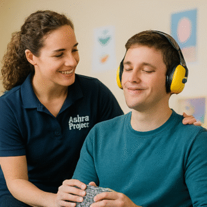 Visual schedules, first/then boards, predictable routines, low-arousal spaces, ear defenders available, graded exposure for crowds/noise.